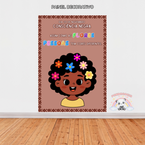 🖤 Painel decorativo: “Assim como as flores, as pessoas têm cores diferentes.”